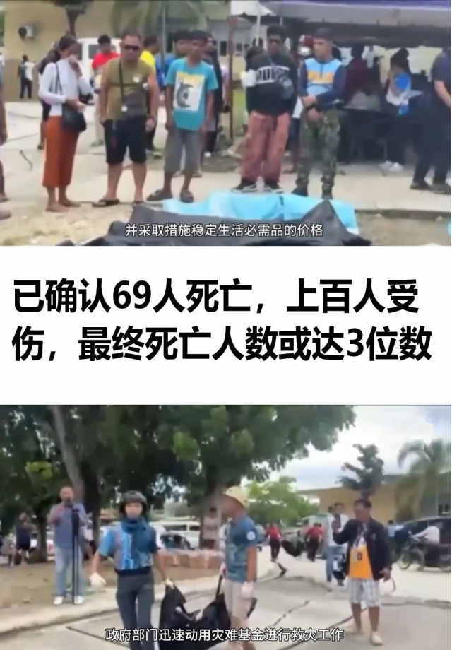 据菲律宾宿务当地新闻报道,死亡人数已经逼近70人(包括31名儿童),超过百人受伤,大量伤者涌入医院,医疗人员忙于处理尸袋,情况一片混乱。
