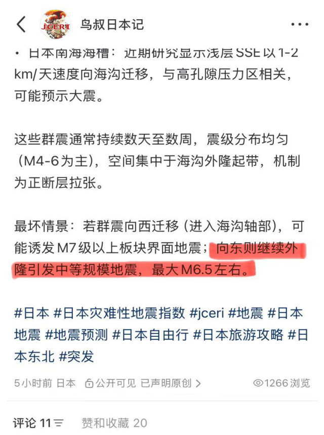 最后再提醒正在日本的宝子们一句:本次三陆冲群震属于高风险事件,后面几周大概率会有余震。要特别警惕夜间可能发生新的强震。