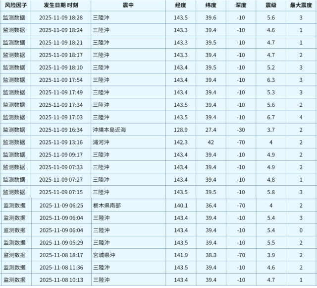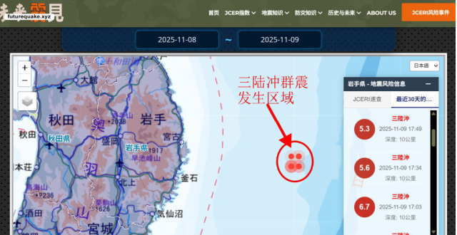 JCERI基于上述数据的推演表明本次群震可能有两个走向:若向西迁移进入日本海沟轴部,可能诱发M7以上板块界面地震;若原地或向东则在外隆部可能继续引发新的强震,最大震级M6.5左右。