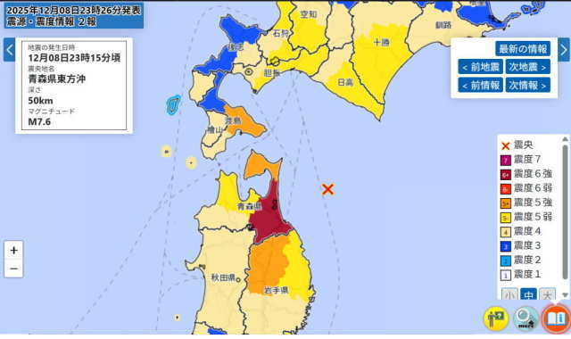 青森县东方冲12月8日发生7.6级地震后,日本气象厅发布了“后发地震注意情报”,紧急提示未来1周三陆冲一带发生8级地震的风险显著提高到1%。