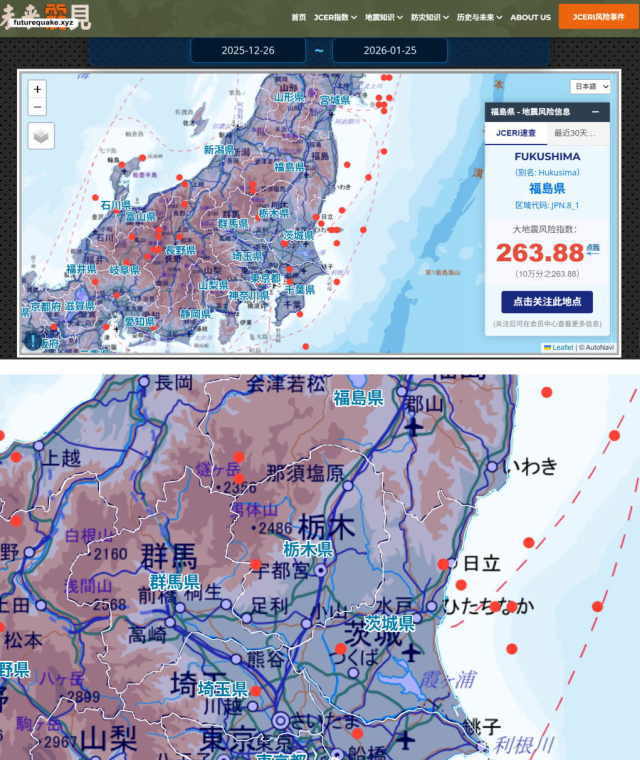 需要特别说明的是,从茨城到福岛浜通区的内陆断层带可能正在连动形成一条串连整个东北地区北部多县的“地震活动走廊”。
